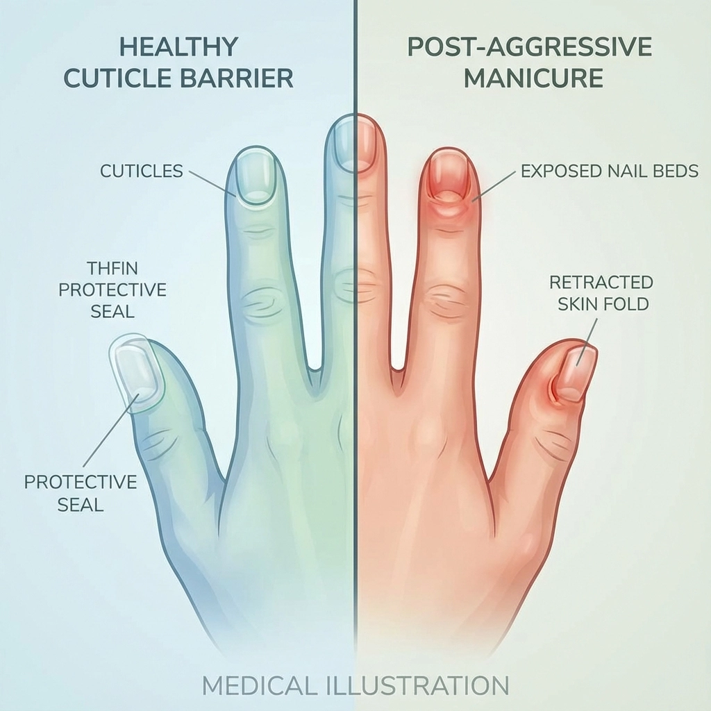 What many salons don't tell you is that aggressive cuticle removal often leads to faster, thicker regrowth. This creates a cycle where you need more frequent appointments to maintain the look, increasing your exposure to potential complications with each visit.
