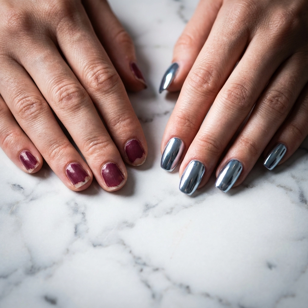 Traditional polish relies on pigments suspended in a liquid base that air-dries to create color. Glass chrome, however, uses ultra-fine metallic particles that reflect light at multiple angles, creating that coveted mirror-like finish that seems to shift and shimmer with every movement. The result? Nails that look like they've been dipped in liquid silver, capturing and reflecting light in ways that regular polish simply cannot achieve.
