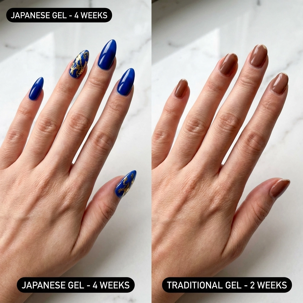 Here's something most people don't realize – Japanese gel requires specialized training and precise technique to achieve its legendary longevity. The application process involves specific prep work, exact curing times, and professional-grade equipment that ensures optimal results.