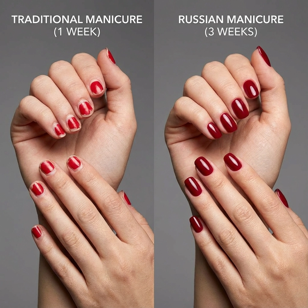 The technique originated in Russia (hence the name!) and emphasizes precision, cleanliness, and longevity. Instead of rushing through the cuticle process, skilled technicians spend extra time ensuring every millimeter of dead skin is removed, creating a flawless canvas for your polish or gel application.