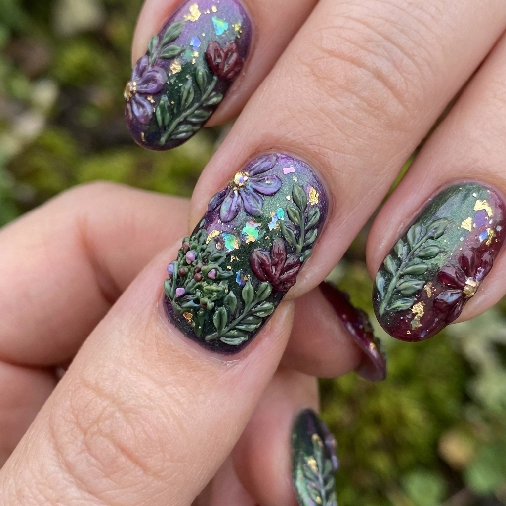 Dimensional flowers and vines inspired by Art Nouveau motifs showcase the artistic possibilities when Japanese gel technology meets refined maximalist vision. Each nail becomes a miniature masterpiece worthy of museum display.
